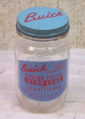 BUICK Enamel Glass Jar Rad Stop Leak Enamelled 1940s