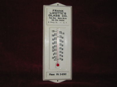 VINTAGE TIN WALL THERMOMETER ADVERTISING AUTO GLASS RI