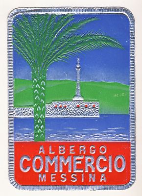 Vintage Luggage label - Hotel Commercio Messina - Italy