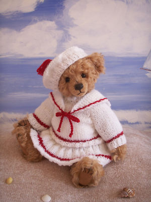 HAND KNITTED 3pc SAILOR GIRL OUTFIT FOR 11" BEAR/DOLL