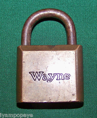 Vintage WAYNE Logo Padlock Pump Lock Warded Lock & Key