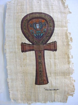 Title (ebay affiliate link): ANKH PAINTING EGYPTIIAN PAPYRUS 1980's Guarantee Cert.
