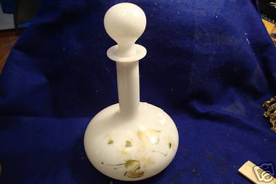 1800'S 9'' PAINTED VICTORIAN MILK GLASS PERFUME BOTTLE