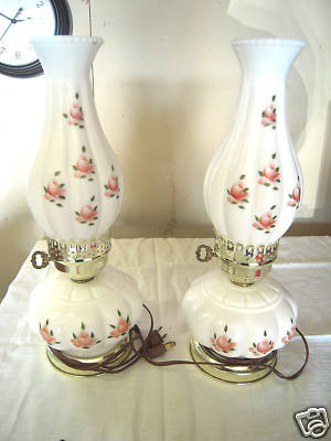 DECORATOR LAMPS WHITE MILK GLASS W/ROSES 15 1/2" TALL