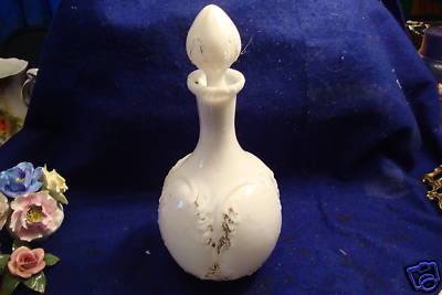 1800'S 9'' MILK GLASS PAINTED VICTORIAN PERFUME BOTTLE