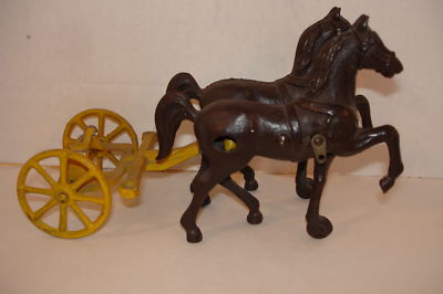 VINTAGE STANLEY CAST IRON CART PULL WITH 2 HORSES