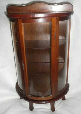Title (ebay affiliate link): VINTAGE MAHAGONY CURVED GLASS CURIO CABINET MINIATURES