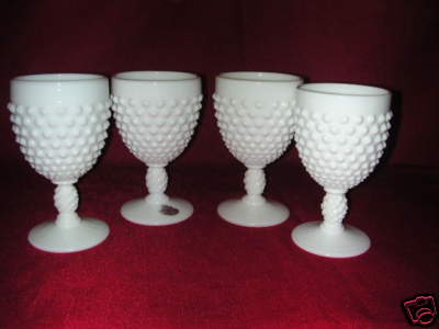 4 FENTON WHITE MILK GLASS HOBNAIL 8 oz GOBLETS