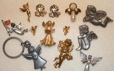 Title (ebay affiliate link): VINTAGE LOT OF ANGEL LAPEL PINS, BROOCHES, KEY CHAIN+