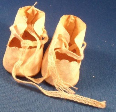 Antique Oil Cloth Doll Shoes W/Original Laces So Cute