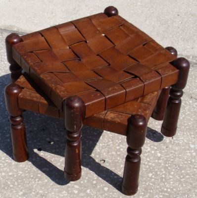 VINTAGE STACKING FOOT STOOLS WOVEN LEATHER