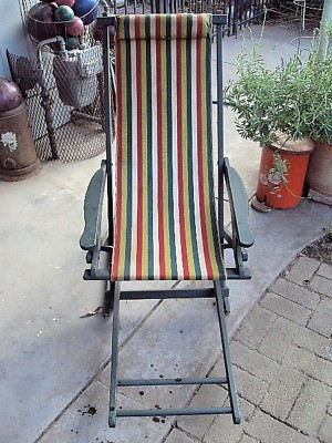 vintage 1940s LAWN deck CHAIR striped canvas ROCKER