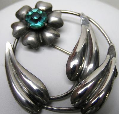 Title (ebay affiliate link): Antique Sterling Silver Floral Brooch Teal Rhinestone