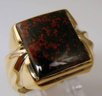 MENS RING ANTIQUE VINTAGE DECO BLOODSTONE 10K GOLD