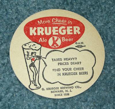 Krueger Beer Coaster More Cheer Taxes Heavy?
