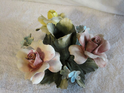 VINTAGE MEDIUM SIZE ROSES CAPODIMONTE CANDLE HOLDER