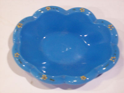 Blue milkglass old pin tray C in pyramid polished base