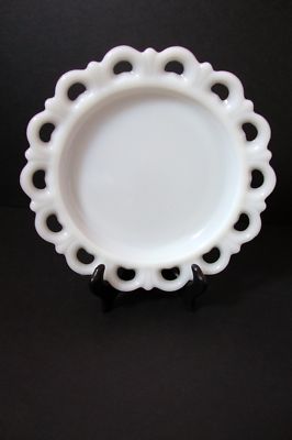Beautiful White Milk Glass Plate Tray Lattice Design