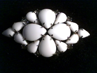 Lovely vintage Milk Glass brooch dark gray rhinestones