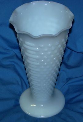 Large Opaque Hobnail Milk Glass Flower Vase