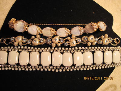LOT VINTAGE/ESTATE BRACELETS; MILK GLASS; HEARTS; OPAL