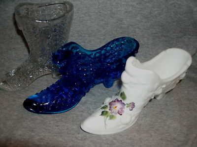 LOT 3 VINTAGE Fenton GLASS Cat Shoe/Boot/Signed Milk