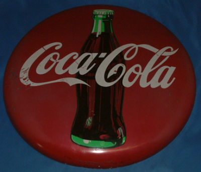 Title (ebay affiliate link): 12 inch COCA COLA BUTTON SIGN TIN Repro 1990