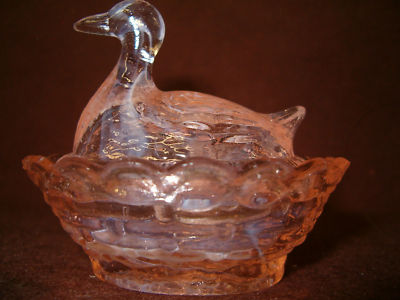 Title (ebay affiliate link): DEPRESSION PINK SLAG GLASS DUCK GOOSE ON NEST DISH SALT