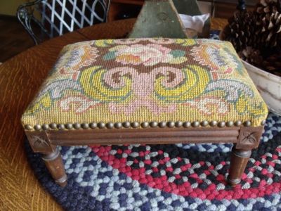 Antique Eastlake Era Footstool Foot Stool Needlepoint