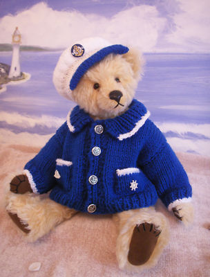Title (ebay affiliate link): HAND KNITTED SAILOR JACKET & CAP FOR A 15-16 INCH BEAR