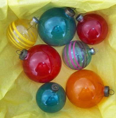 Title (ebay affiliate link): 7 WW2 Christmas ORNAMENTS Unsilvered Vintage Lot Stripe