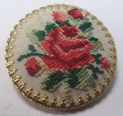 antique vintage hand embroidered brooch pin roses