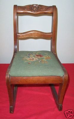 VINTAGE CHILD ROCKING CHAIR TAPESTRY WOOD