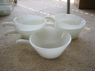 MINT FIRE KING 5 white soup bowl with handle milk glass