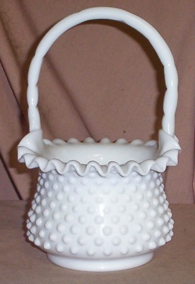 VIntage Fenton Art Milk Glass Hobnail Deep Basket