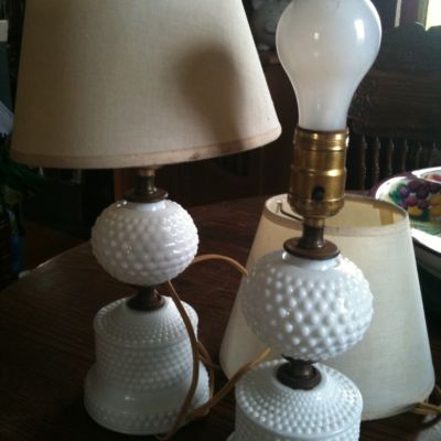 Vintage Hobnail Milk Glass Table Lamp Pair