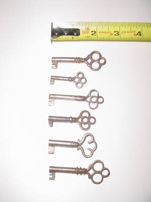 Title (ebay affiliate link): 6 ANTIQUE GOTHIC SKELETON TRUNK FURNITURE DOOR KEYS