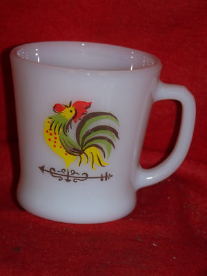 FIRE KING WHITE MILK GLASS "CROWING ROOSTER" CUP/MUG .