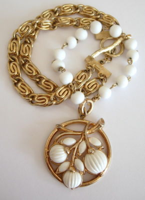TRIFARI White Milk Glass Fob Bracelet CORO Toggle Type