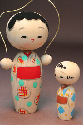Japanese Antique Wooden Doll Kimono Kokeshi pair