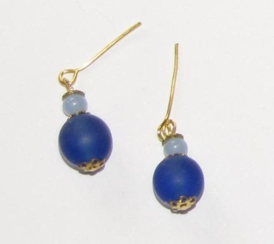 Vintage Frosted Blue Earrings For Antique Doll