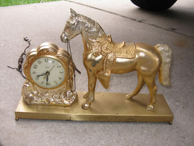 ANTIQUE/VINTAGE UNITED BRASS METAL HORSE MANTEL CLOCK