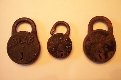 Title (ebay affiliate link): 3 Antique Padlocks 2 BEAR And 1 BUCK No Keys Vintage