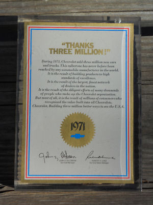 Title (ebay affiliate link): 1971 Chevrolet Sales Plaque "Thanks Three Million!"