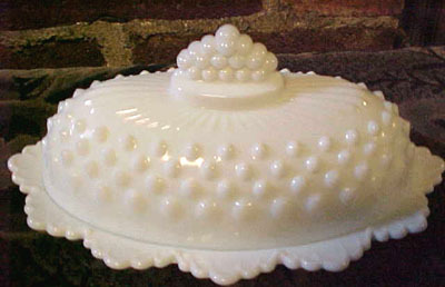1963 FENTON WHITE MILK GLASS HOBNAIL 1/4# OVAL BUTTER