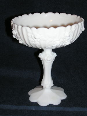 VINTAGE FENTON MILK GLASS ROSE COMPOTE CANDY DISH BOWL