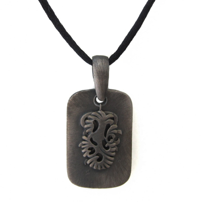 Antique Metal Tribal Tag Pendant Mens Leather Necklace