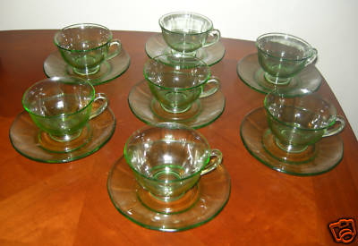 Title (ebay affiliate link): 7 Depression Glass cups & saucers~FOSTORIA, Fairfax!