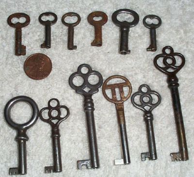 Title (ebay affiliate link): 12 Antique Barrel Keys Furniture Lock Hardware Parts