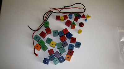 OLD TOY WOOD STRINGING BEADS 44 BEADS 1 INCH & SMALLER